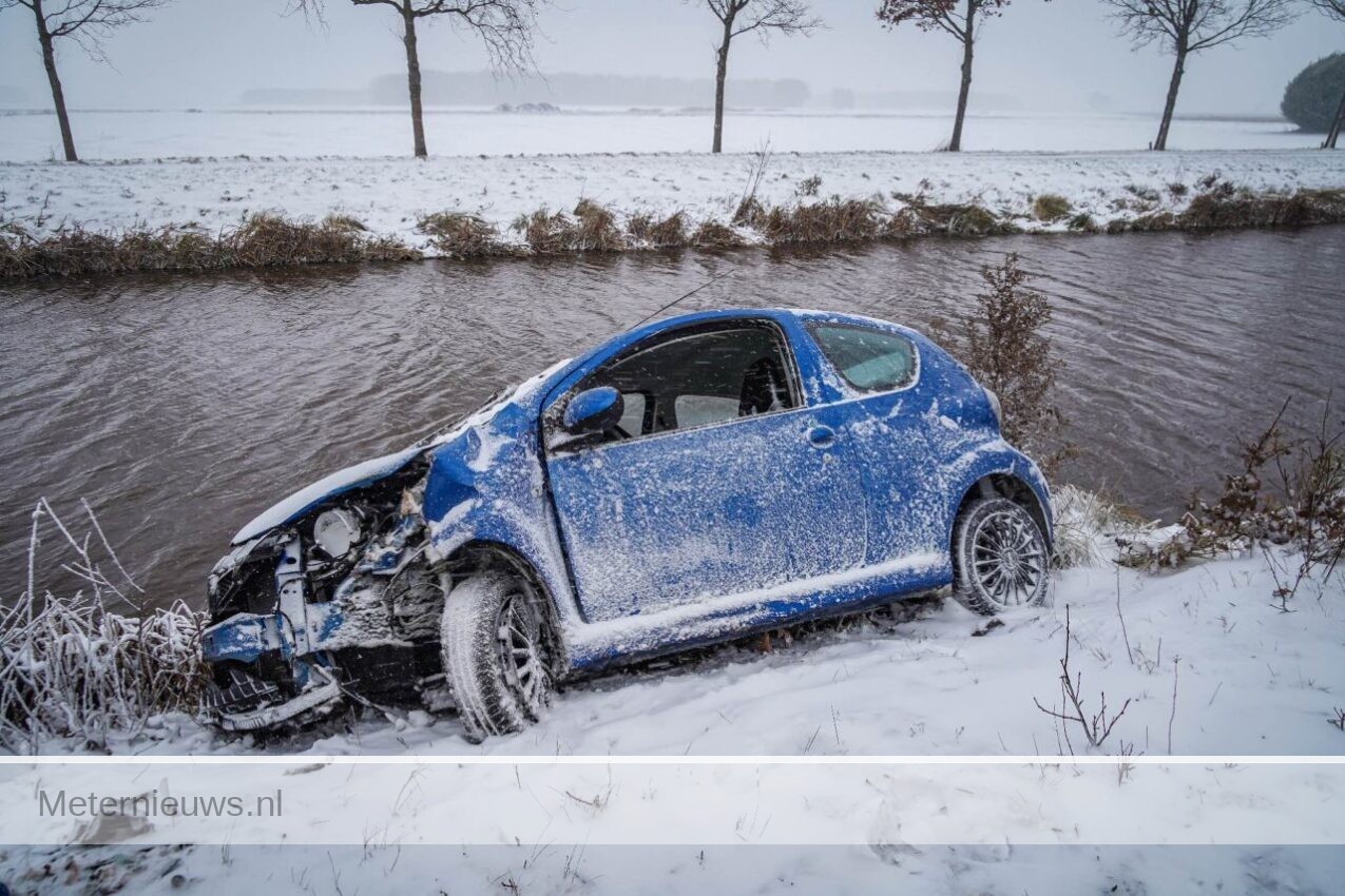 Auto Bijna in kanaal door gladheid persoon ziekenhuis emmen-compascuum Foto/Video: Christian Bos / Damian Wolters – Persbureau Meter
