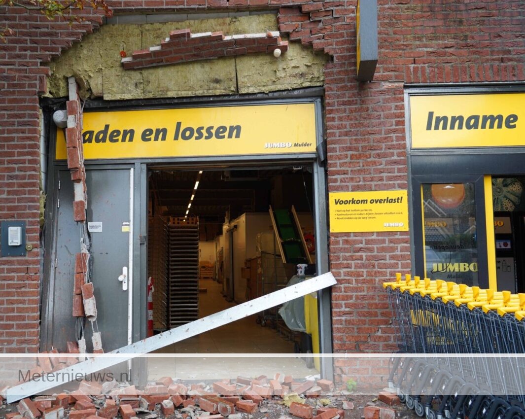 vrachtwagen rijdt muur jumbo aan gortBeilen